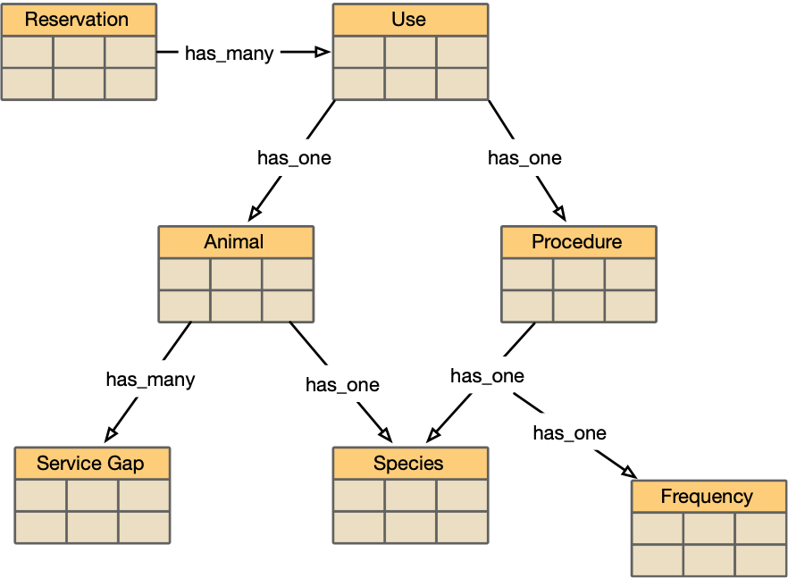 |> reservation_for(["bossie"], ["haltering"], date: @mon)That code constructs test data for a database configuration like this: