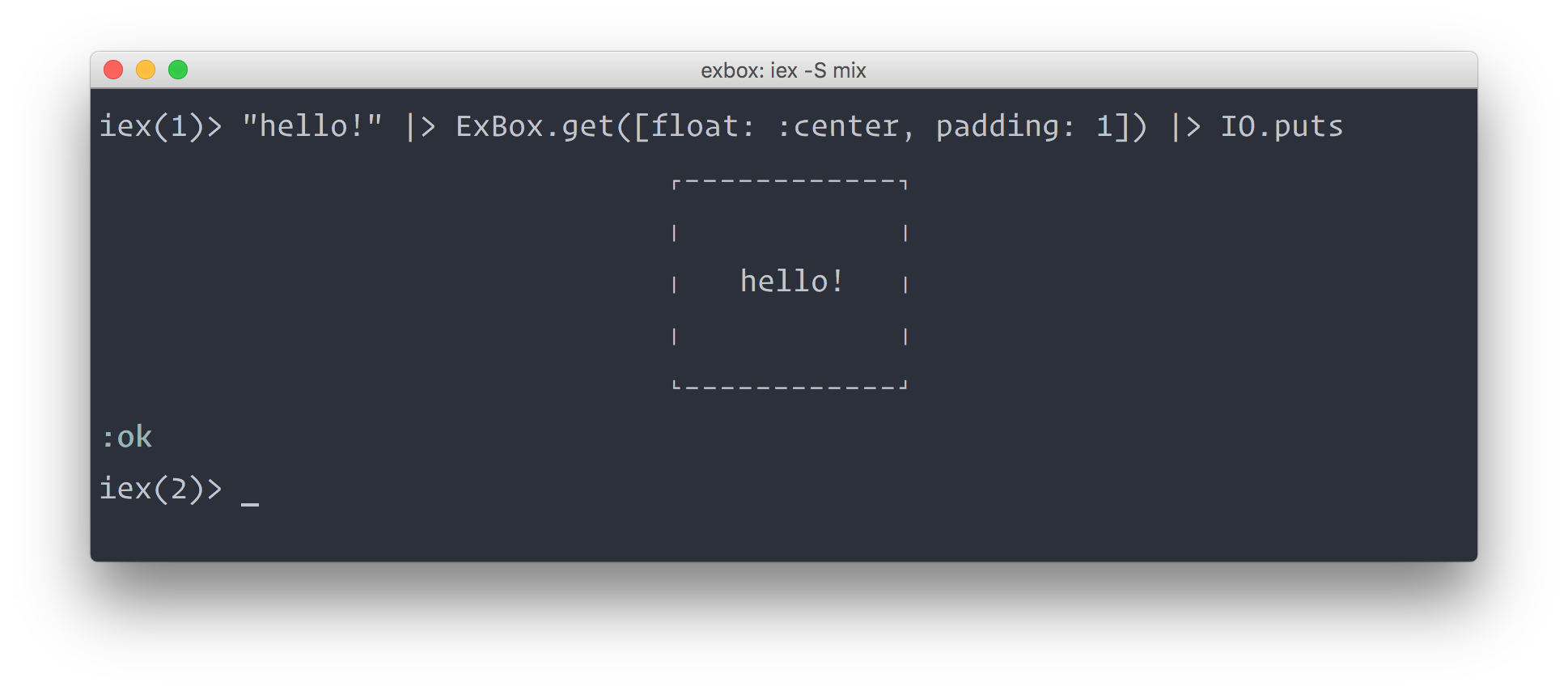 ExBox pairs well with ExChalk, which you can use to style text before piping it.