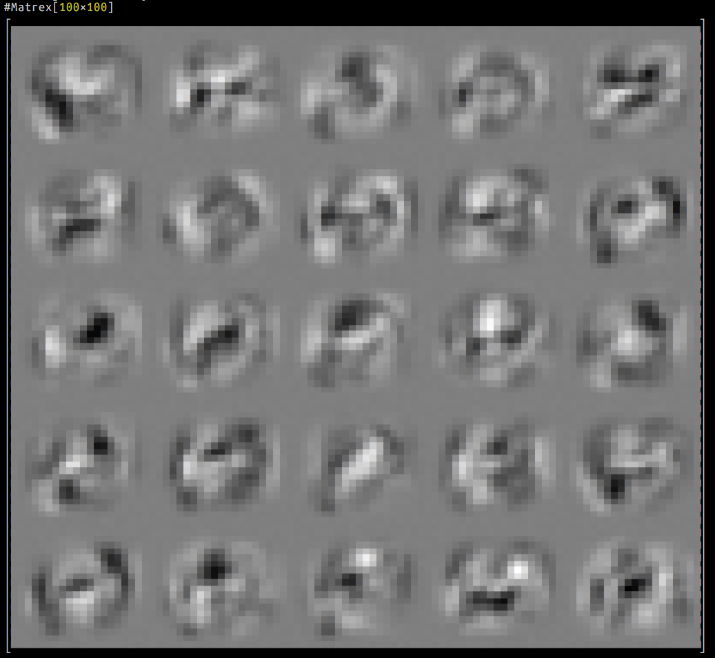 It can even draw a heatmap of your matrix in console! Here is an animation of logistic regression training with Matrex library and some matrix heatmaps: