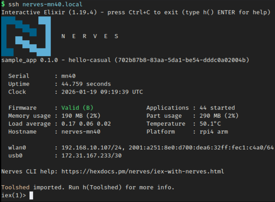 NervesMOTD.print() to your iex.exs file (typically in