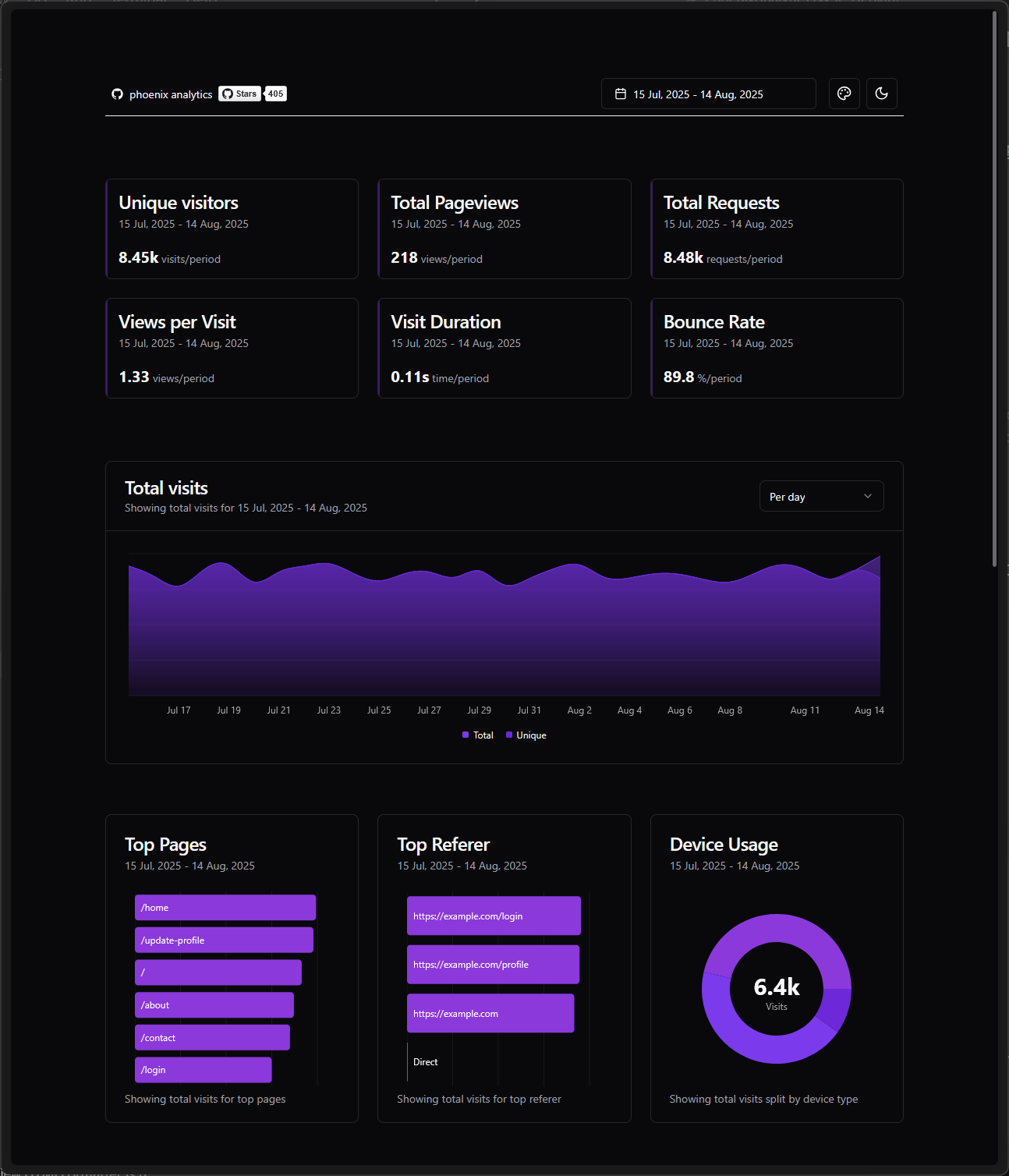 [!IMPORTANT] Version 0.4.0 Breaking Changes: The 🦆 duck has been removed. Users who prefer the duckdb version should use the maintained fork: PhoenixAnalyticsDuck