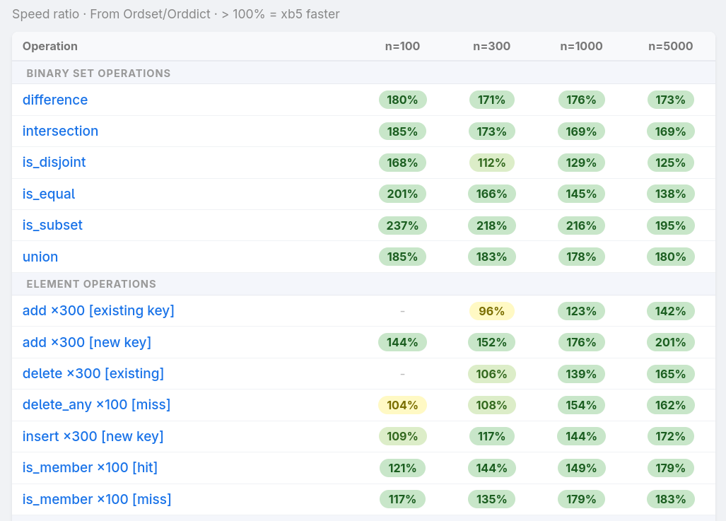 is_disjoint,is_subset): 1.2–2.2× as fast, with similar heap use - Filter, filtermap, map: ~1.5–2.5× as fast, with up to ~40% less heap